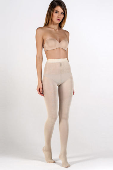 Тонкие утепленные колготки с шерстью и бамбуковым волокном бежевого цвета. Мягкие и бархатистые. Удобный пояс, плоские швы, уплотненный носок, сзади один шов.