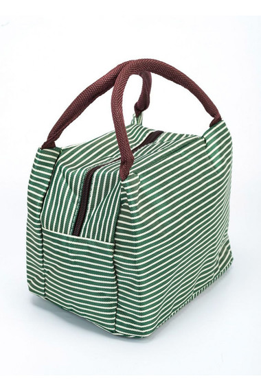 Фото товара 17049, термосумка для ланч-бокса в полоску «горячий обед» зеленая